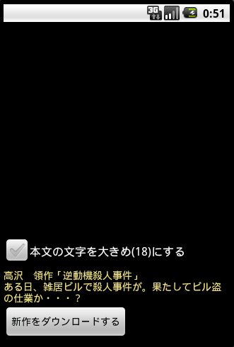 無事ダウンロードが終了すると、左図のように、画面上部に、作品名、作者名、概要、そして目次が表示されます。