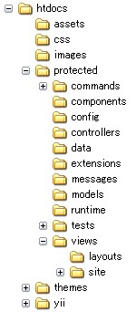 サーバーはレンタルサーバーを利用する前提のため、Yii Framaworkは、ディレクトリに設置します。